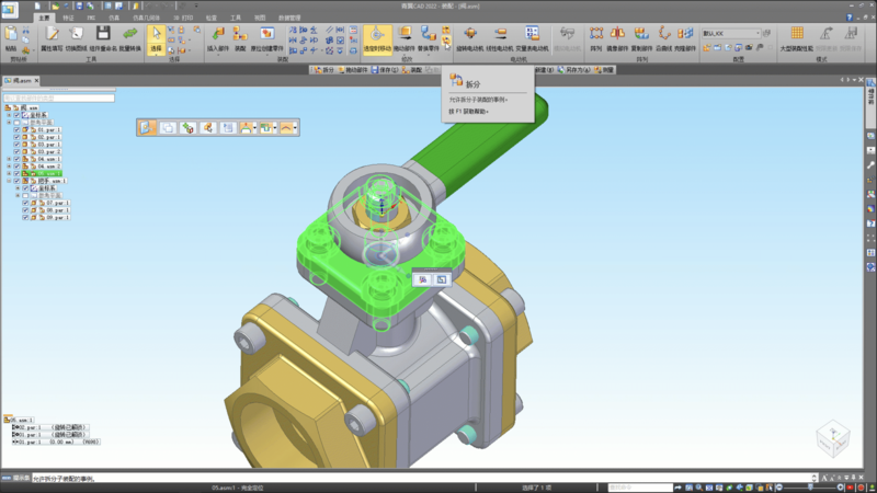 4 使用”拆分”功能,将顶层装配下的05子装配,拆分成总装层级下的单独部件,完成任意子装配的层级拆分