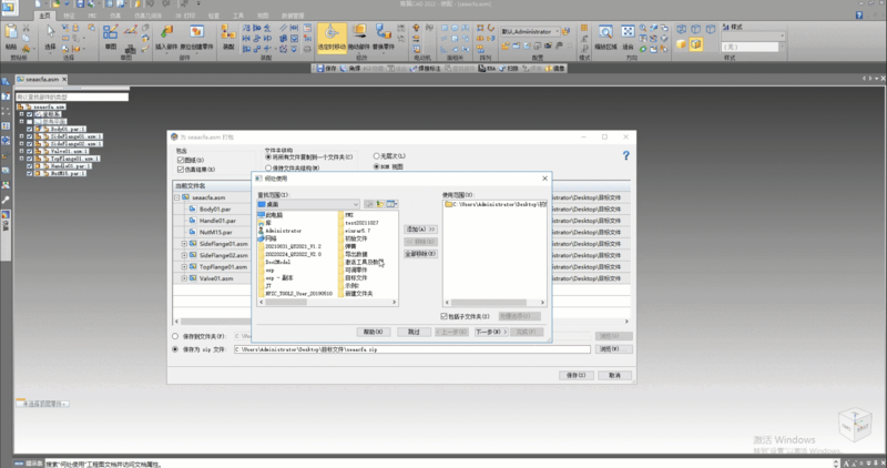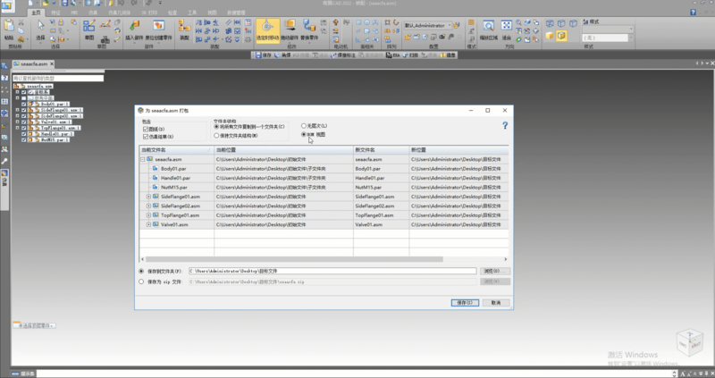 装配打包功能,是将整个产品的零组件,包括各个文件夹的子组件,引用的标准件还有他们的图纸,都打包复制出来,放置到选择的文件夹中,并且可以按原文件层级结构放置,或者都统一放到一个文件夹下,这个功能,主要应用与数据的分享,能帮助客户提升工作效率。