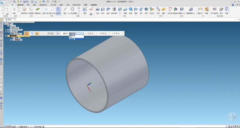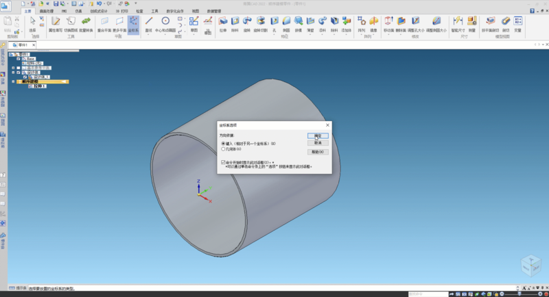 3 使用“坐标系”命令,此时基于坐标系1,新建坐标系2,设置沿Y轴方向的定位距离,作为“轴向定位值”的开孔距离控制