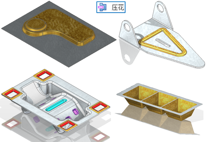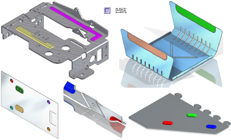 1 凹坑:一种特殊的模压成型特征,产生凸起或者凹坑效果;不能展平