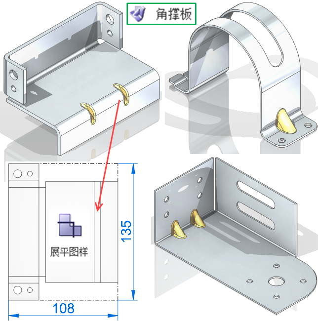 3 加强筋:用于加强钣金件的刚性,也可以起到装饰作用;不能展平