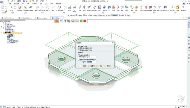 5 压花:通过多实体的布尔操作,设置间隙和厚度参数,在钣金件中创建的冲压特征