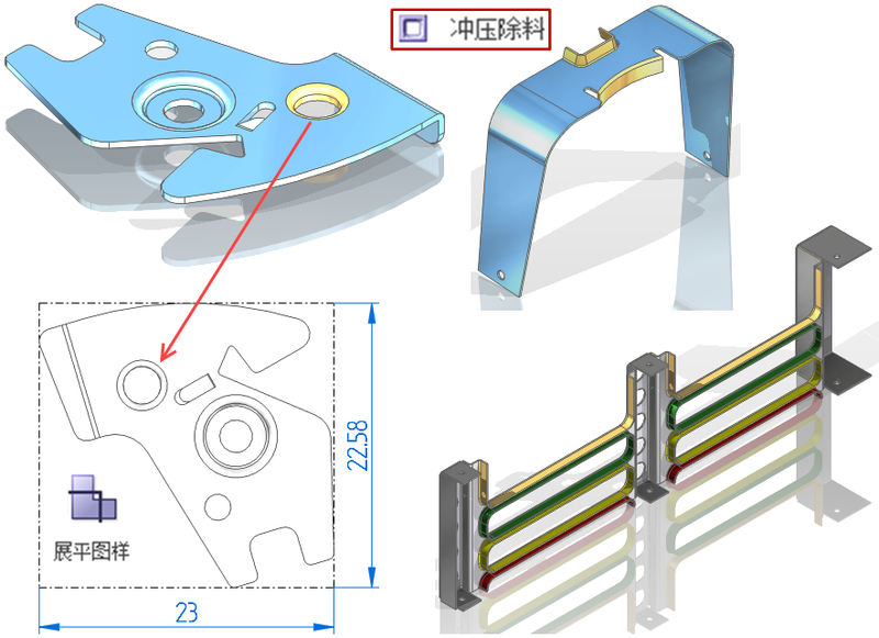 6 冲压除料:应用广泛的成型手段之一;不能展平