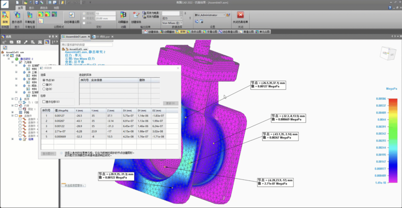 通过以上青翼CAD有限元分析之装配分析实例,我们不难看出,青翼CAD不仅可以方便快速的加载各种边界条件,也可以快速的对网格进行自动划分和手动调整,方便快捷的前处理及强大的求解器,使有限元仿真分析变的更加容易,极大的提高了设计师的设计仿真一体化效率。