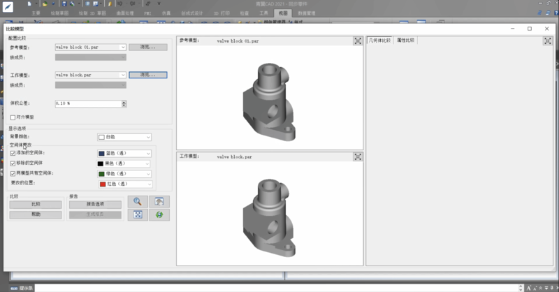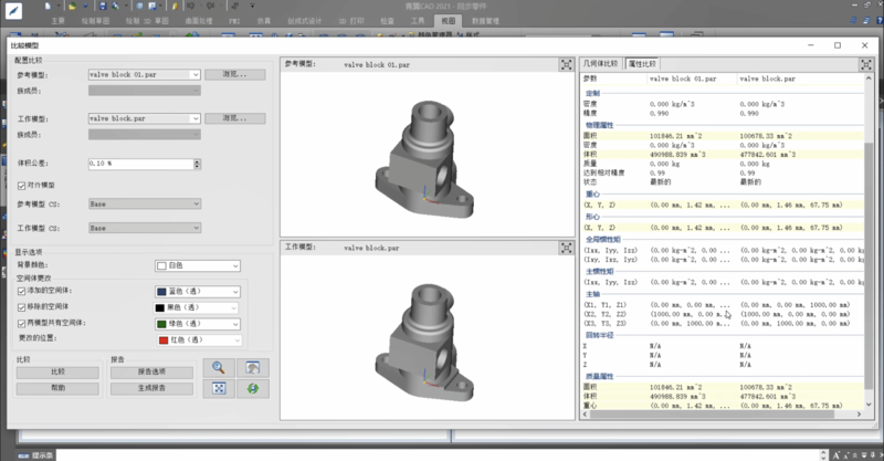 青翼CAD作为设计、仿真、制造一体化的高端3D软件,提供产品设计、产品仿真、产品加工等解决方案。而青翼CAD软件的【比较模型】功能,可以快速分析两个模型尺寸、特征、属性的差异。