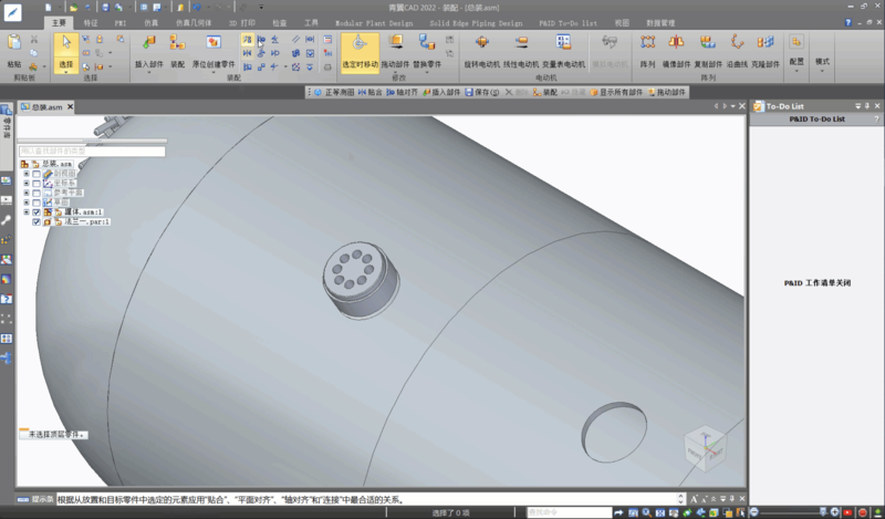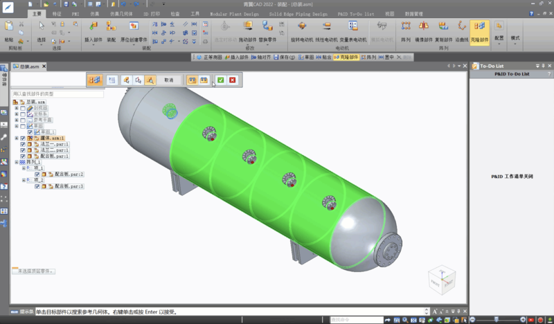 装配完成后修改罐体上安装孔的位置,更新后可以看到法兰和配合板自动更新装配位置。