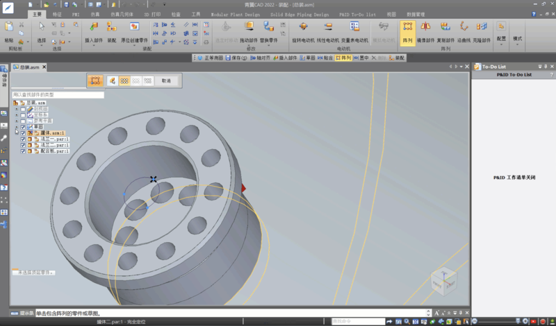 在装配的过程中,为了操作的简便性我们有时会阵列一些零部件,但是由于“阵列”命令的特性,其在阵列零件时不会创建装配关系。而随着装配的继续进行,当我们想用“克隆”命令快速重复装配这些阵列零件时就会发现,由于“克隆”命令是基于原始零件的装配关系来生成克隆零件的装配关系的,所以对于阵列出来的零件将无法自动生成装配关系,无法满足要求。