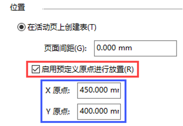 不选择时自由定位表格;选择时预定义X/Y原点值