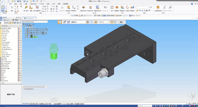 1 打开一个装配,从标准件库中调用一个螺栓,先按照传统的方式装配第一个零件