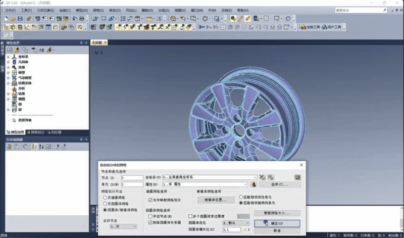 设置网格大小为3mm;加载材料,可以自定义或者从青翼CAE软件自带的材料库中选取;划分四面体网格:中边节点选项用于控制生成10节点四面体单元或者4节点四面体单元的网格。