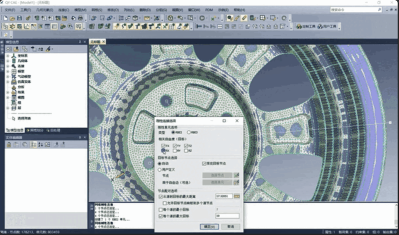 分别创建刚性连接单元模拟车轴与轮毂的螺栓连接以及车轴与轮毂安装端面的连接。