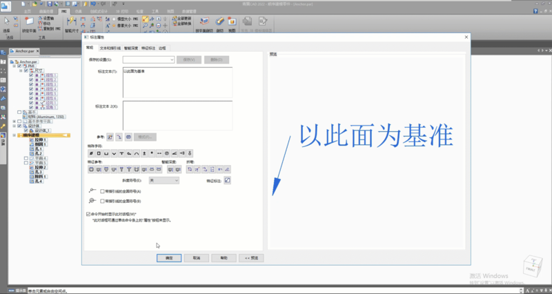 2 通过“锁定平面”,确定PMI尺寸的生成方向