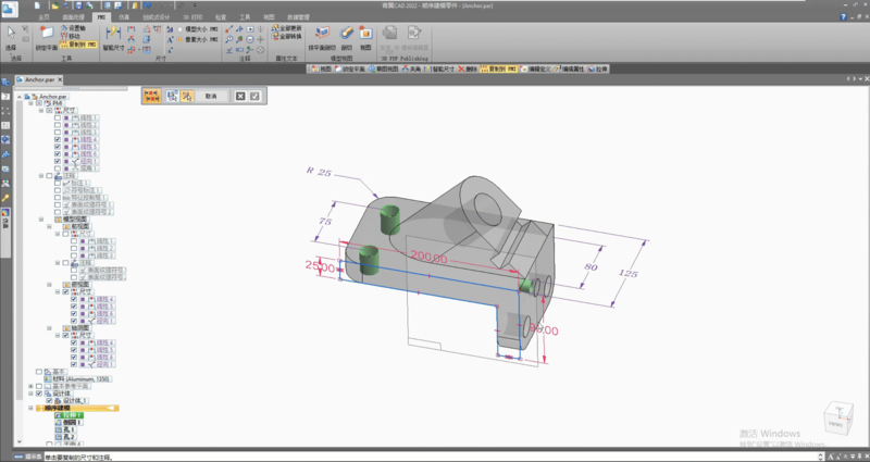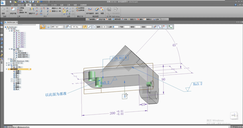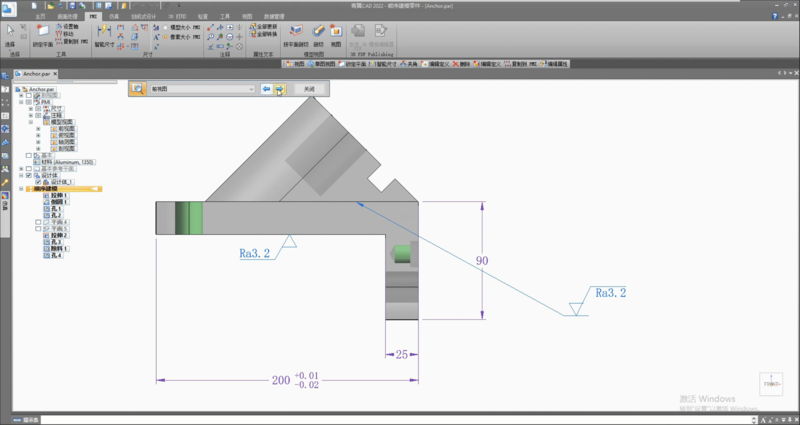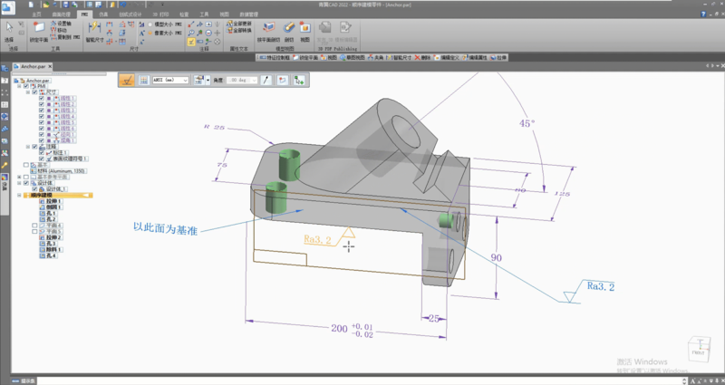 产品制造信息(PMI——Product and Manufacturing Information) 由添加到三维模型的尺寸和注释所组成,用于审核、制造和设计过程中。按照传统方式,尺寸、基准、注释都在二维图纸中表达,为制造或者检查部门提供某个模型的尺寸和公差要求。随着计算机辅助三维建模和加工制造软件普及,如今更多公司更喜欢使用三维模型来传递信息。而青翼CAD也支持三维PMI标注,并且操作简单,功能强大。