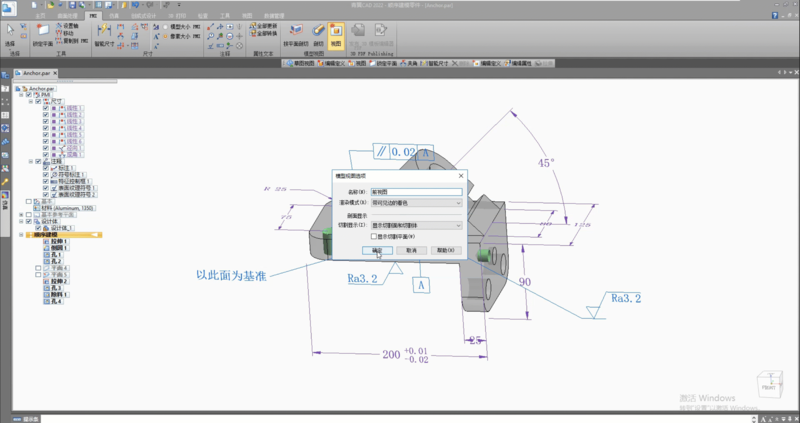 9 创建视图,将合适的尺寸放入视图,可以方便查看和之后快速创建二维工程图