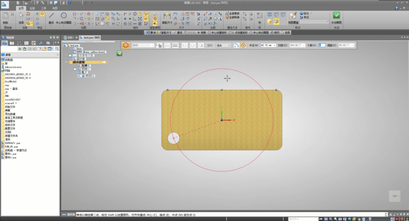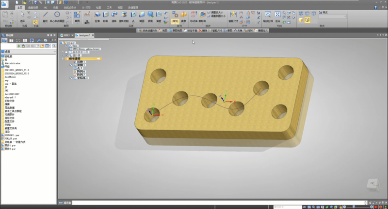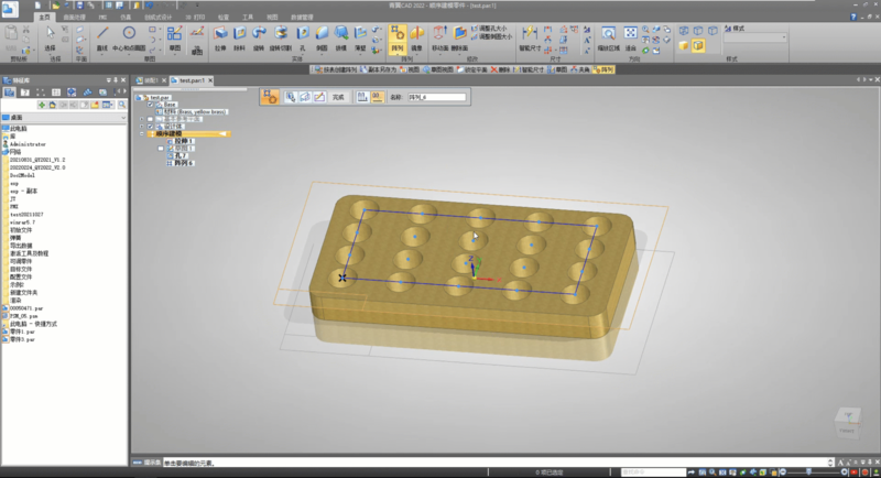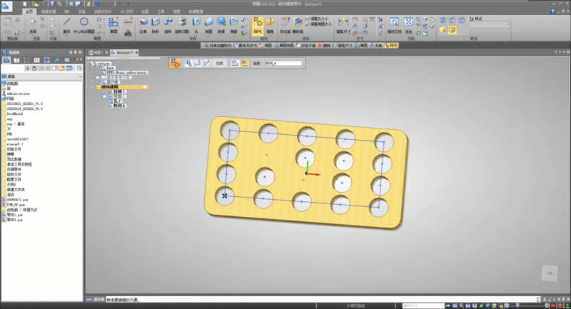 在零件环境中:有普通阵列、沿曲线阵列、按表创建阵列等快速阵列方法,其中普通阵列,包括矩形阵列和圆周阵列,需要在草图中绘制阵列位置。