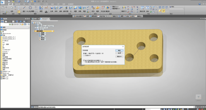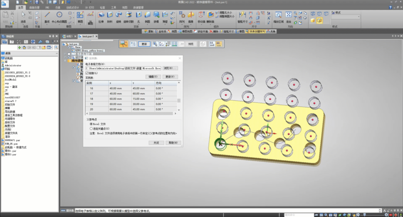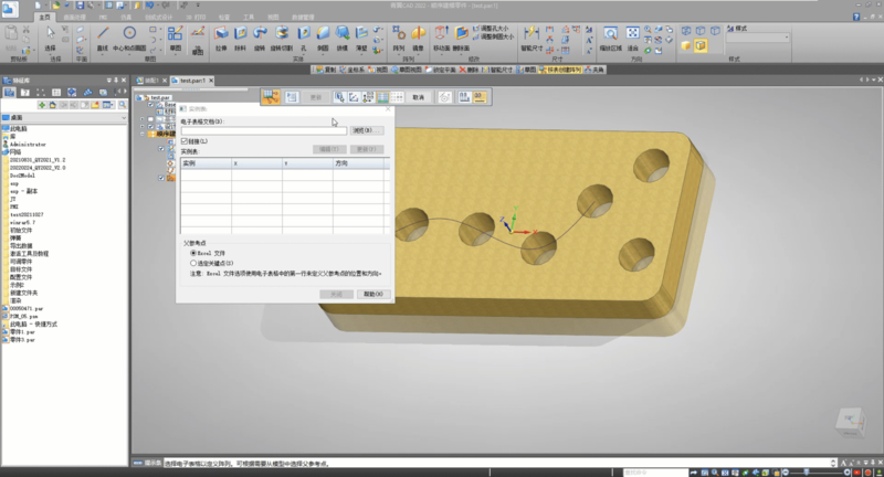 8 按表创建阵列,首先需要使用新建坐标的功能,在阵列特征处新建一个初始坐标
