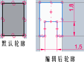 草图步骤(非必须):绘制或者修改缺口轮廓。
