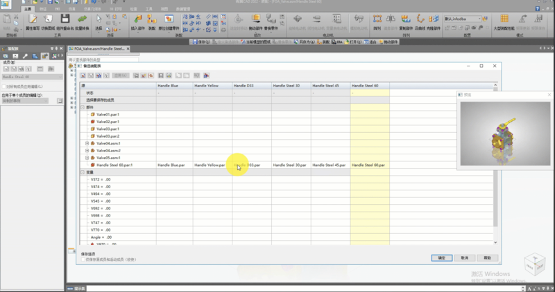 3 为不同装配族成员配置对应的零件,激活不同配置,查看族成员