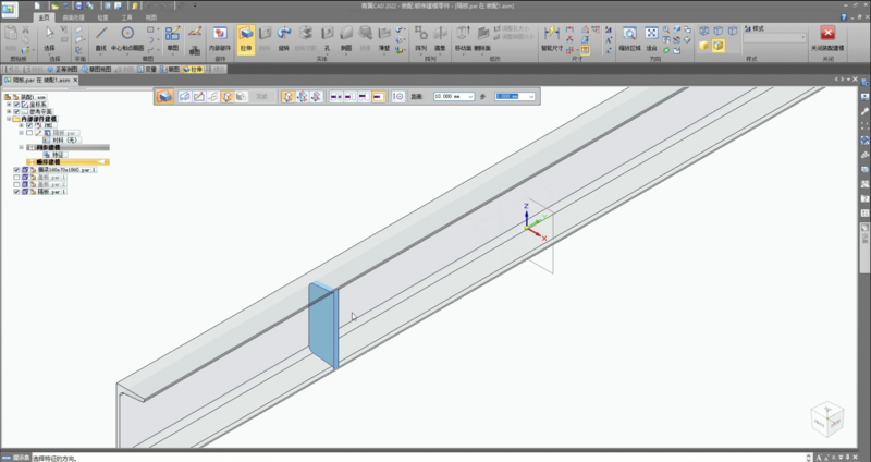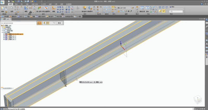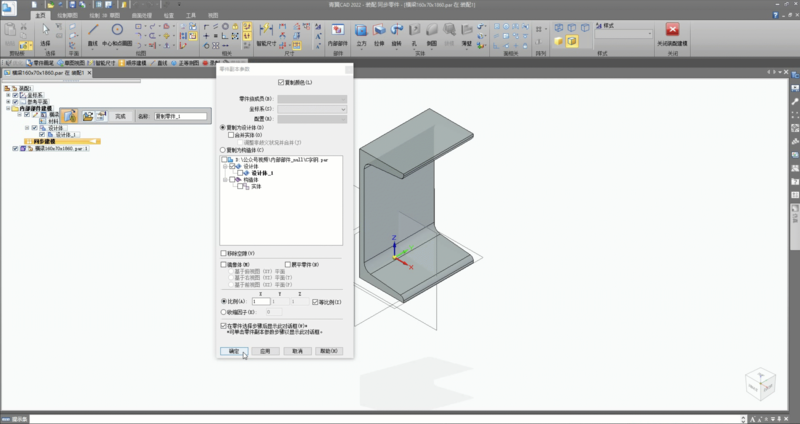 1 在青翼装配环境中,使用“创建内部部件”命令,生成新的内部部件(装配树下紫色方块图标),并可定义设计模板、名称、材料、结构层级
